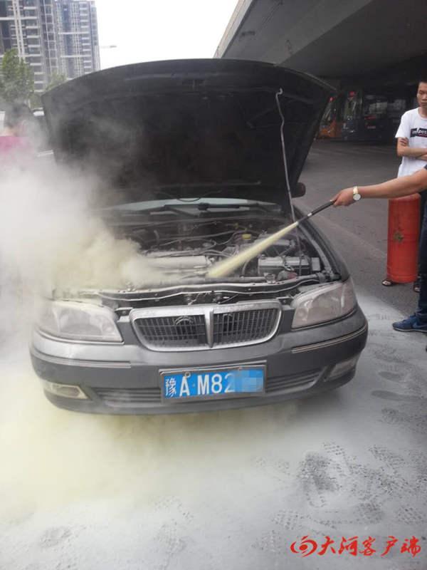 “我一开始是先用车载灭火器灭火,但白烟越来越大,我就赶紧跑到附近的919路调度室求救。”轿车车主张帅说道。