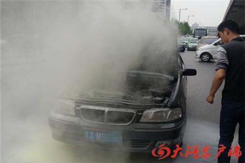 今天上午9点,一辆轿车行驶到西三环中原路向北50米处,发现轿车前引擎盖开始冒白烟,见情况不对轿车车主马上下车。