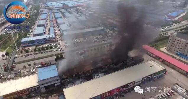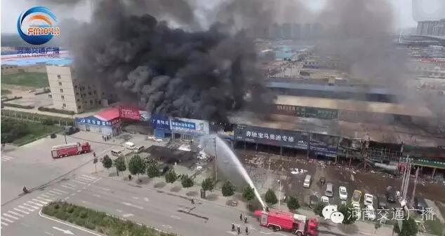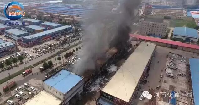河南交通广播记者迅速赶往火情现场,整个汽配城一层二层都被烧的面目全非,消防部门先后出动23辆消防车,100多名官兵灭火。