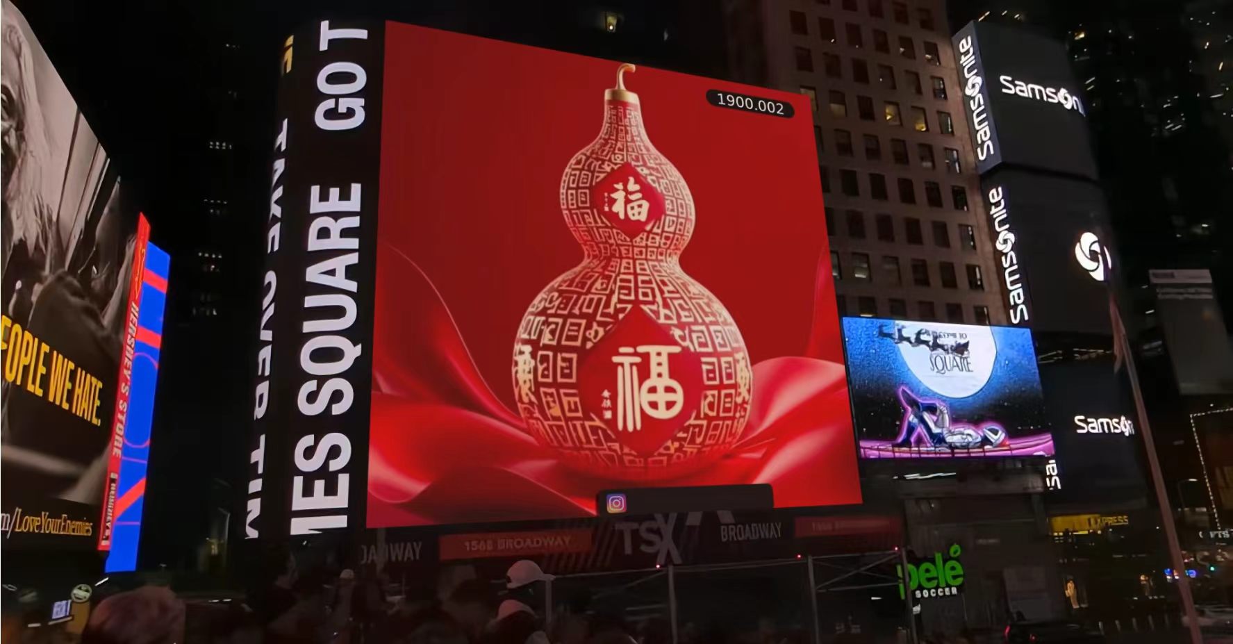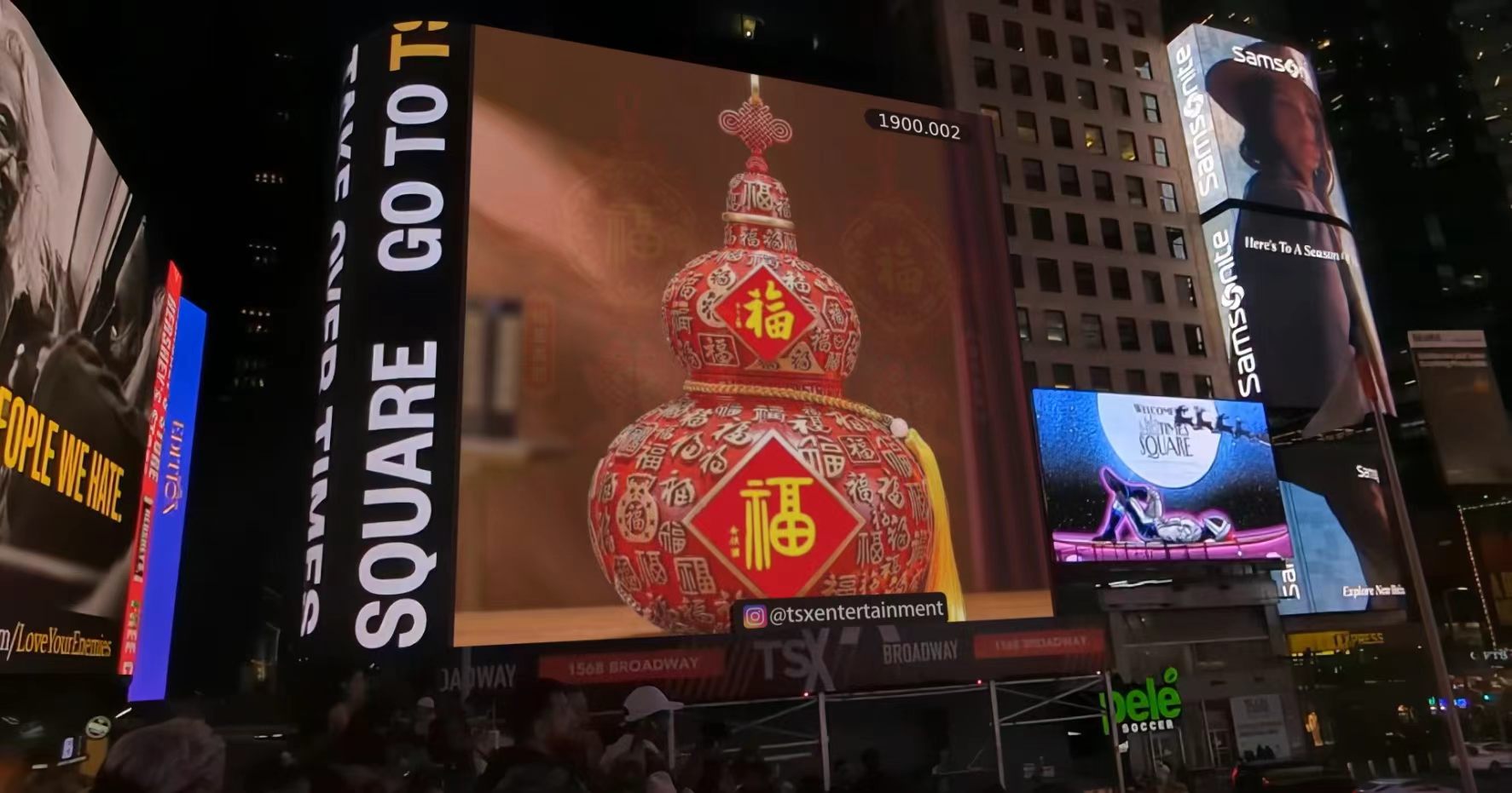 北京时间3月20日7点(纽约时间3月19日19点整),当夜幕降临“世界的十字路口”——美国纽约时代广场,百老汇大道与第47街交汇处的巨大屏幕上,骤然绽放出一抹惊艳世界的“中国红”。